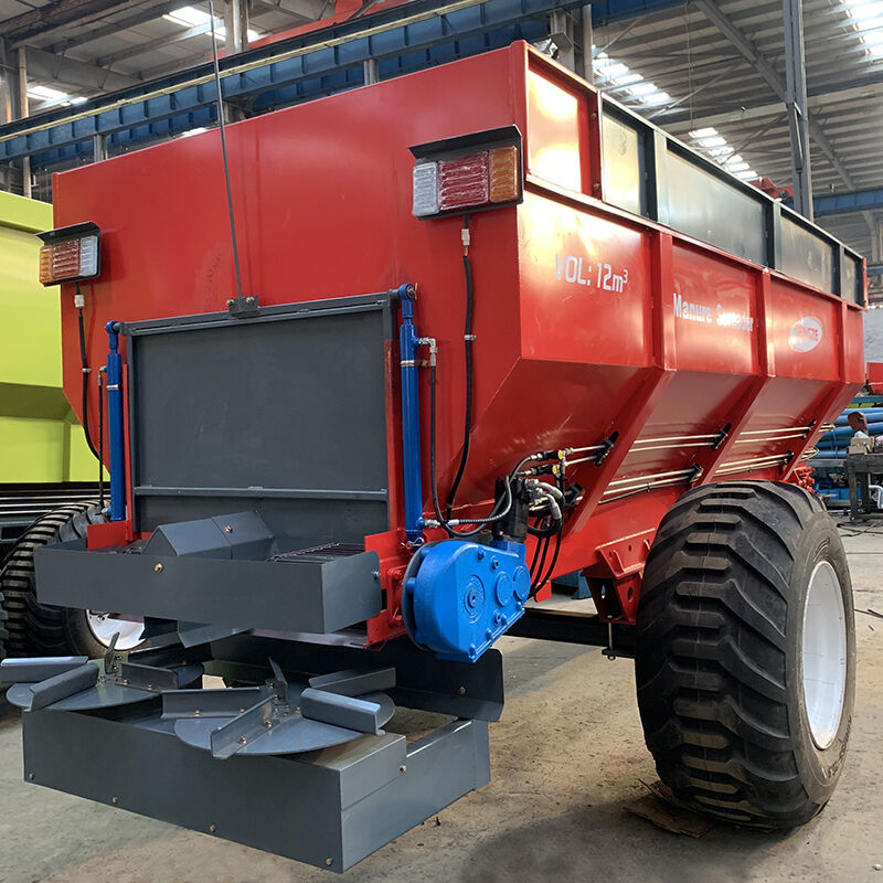 At the core of its design is a robust structure comprising a reinforced traction frame, welded steel frame (resistant to deformation under heavy loads), and a large-capacity fertilizer hopper (12 cu ft standard volume, customizable for specific needs). The hopper undergoes sandblasting, shot blasting, and multi-layer anti-rust coating treatments, effectively resisting corrosion from moist organic materials and extending service life . Key functional components include a dedicated hydraulic oil tank (solving the problem of unstable hydraulic performance in small tractors), high-quality hydraulic motor, precision gearbox (equipped with a built-in overload protector), double-chain feeding device, and a dual-disc spreading system.